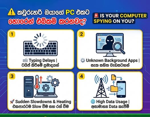 Keyloggers සහ Spyware හරහා ඔයාගේ දත්ත සහ Passwords හොරකම් කරන්න පුළුවන්. මේ ලක්ෂණ ගැන සැලකිලිමත්…