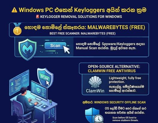 කලින් Post එකෙන් අපි කතා කළානේ කවුරුහරි අපේ PC එකට හොරෙන් එබිකම් කරනවද (Keyloggers/Spyware) කියලා…