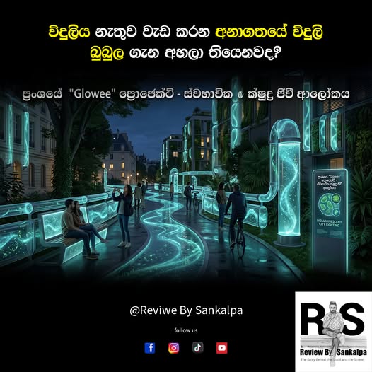මේකට කියන්නේ “Glowee” ප්රොජෙක්ට් එක කියලා. මෙතනදි කරන්නේ සාමාන්ය බල්බ් දානවා වෙනුවට ස්වභාවිකවම එළිය විහිදුවන ක්ෂුද්ර ජීවීන් (microalgae) පාවිච්චි කරලා අමුතුම ලයිටින් සිස්ටම් එකක් හදන එකයි. හරියට රෑට මුහුදේ රළ වදිනකොට නිල් පාටට දිලිසෙන්නේ… අන්න ඒ වගේ සීන් එකක් තමා මේකෙත් තියෙන්නේ. ![]()