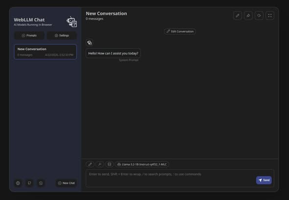 WebLLM කියන්නේ browser එක ඇතුළෙම AI model එකක් run කරන්න පුළුවන් system එකක්. සාමාන්යයෙන් AI chatbot එකක් use කරනකොට userගේ message එක server එකකට යවනවා. Server එකේ model එක run වෙලා response එක ආපහු browser එකට එනවා. ඒත් WebLLM වලදී මේක වෙනස්. Model එක browser එක තුළම load වෙලා local විදියට run වෙනවා. ඒ කියන්නේ userගේ message එක browser එකෙන් පිටට යවන්නේ නැහැ.