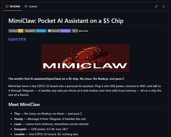 මේකට හොඳම උදාහරණයක් තමයි MimiClaw කියන project එක. මේක පොඩි ESP32-S3 development board එකක් use කරලා හදපු smart AI assistant එකක්. Setup එකත් බොහොම simple — USB එකෙන් power දෙනවා, WiFi එකට connect කරනවා, එතනින් පස්සේ Telegram හරහා ඒ AI එකත් එක්ක chat කරන්න පුළුවන්. ඒ කියන්නේ, ඔබට everyday use කරන chat app එකෙන්ම ඔබේ AI assistant එක control කරන්න පුළුවන්.